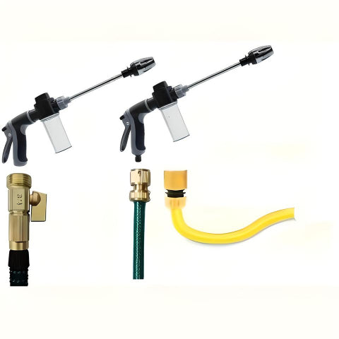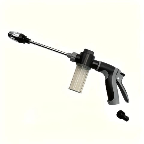 تقدم هذه البندقية ضغط ماء مرتفع لتنظيف سريع وعميق. بفضل فوهتها الدوارة بزاوية 360 درجة، يمكنك بسهولة ضبط الرذاذ حسب السطح المراد معالجته. تصميمها المريح يضمن استخداماً مريحاً ومتحكماً في كل جلسة تنظيف.