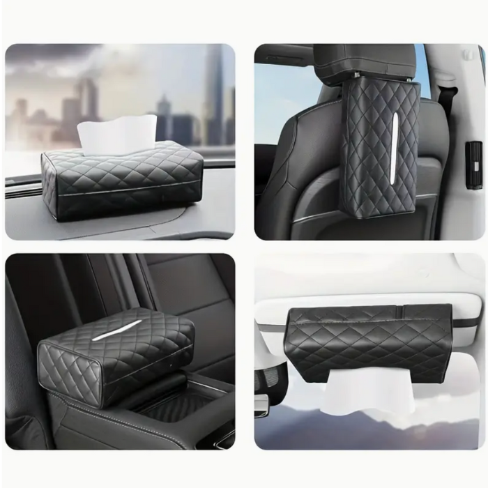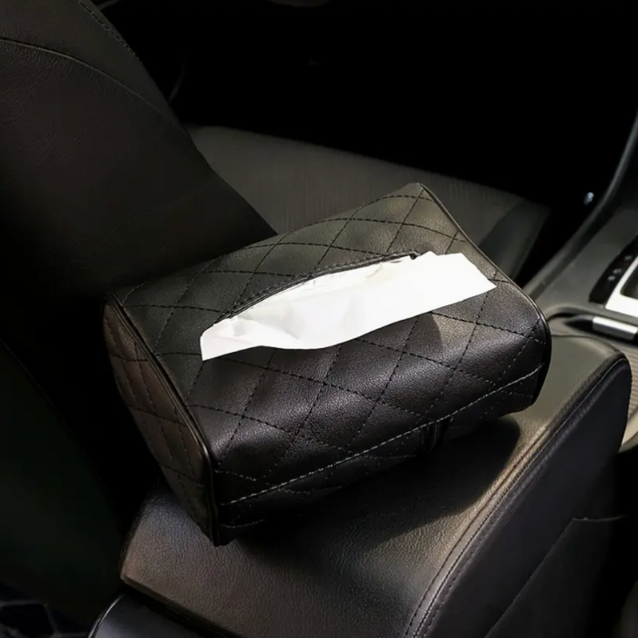 Bøtte til lommetørklær bil i PU-lær – feste til solskjerm eller nakkestøtte